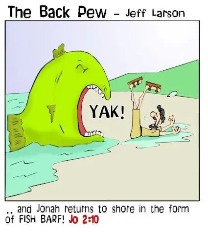 This Bible cartoon recalls Jonah refusing to go to Nineveh