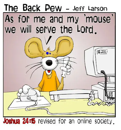 This bible cartoon paraphrase of Joshua 24:15 is revised for an online christian society