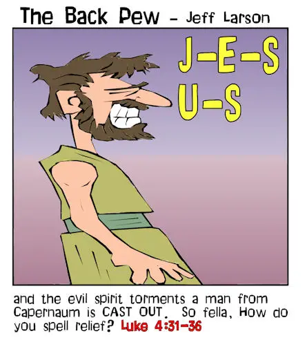 This bible gospel cartoon shares the story of a man exorcised of evil spirits