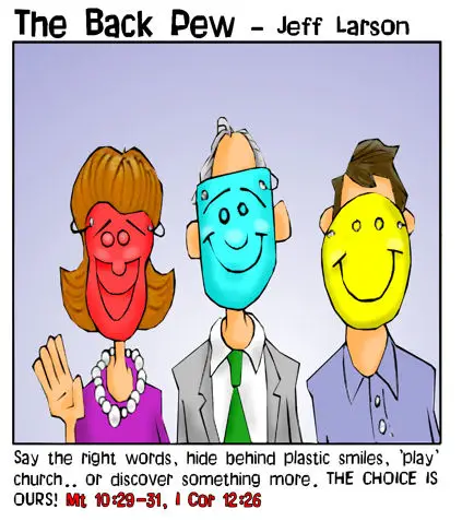 This Christian cartoon shares how we hide behind our masks saying the right words