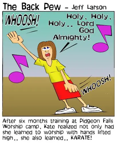 This church worship cartoons featured the use of the old cone of silence for the tone deaf